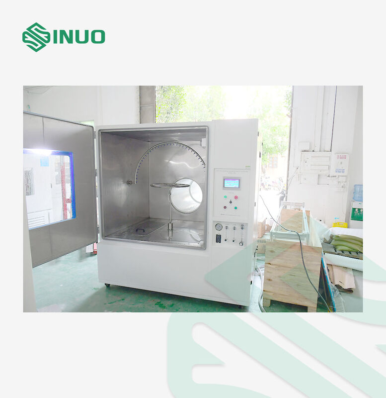 The chamber is equipped with oscillating tubes for IPX3 and IPX4 tests and dedicated jet nozzles for IPX5 and IPX6 tests, ensuring full coverage of standard water spray conditions. A stable water supply system, controlled spray angle, adjustable flow rate, and rotating turntable guarantee uniform and repeatable testing results.
