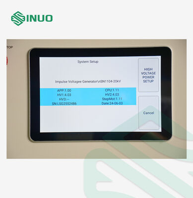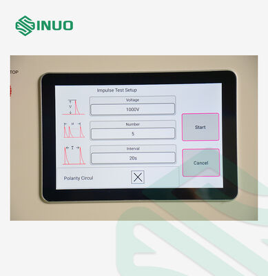 | Fala napięcia impulsowego | Czas czoła fali impulsowej: 1,2 µs ± 30%; Połowa czasu po fali: 50 µs ± 20% Należy pamiętać, że przebieg należy sprawdzić na zewnętrznym oscyloskopie |
